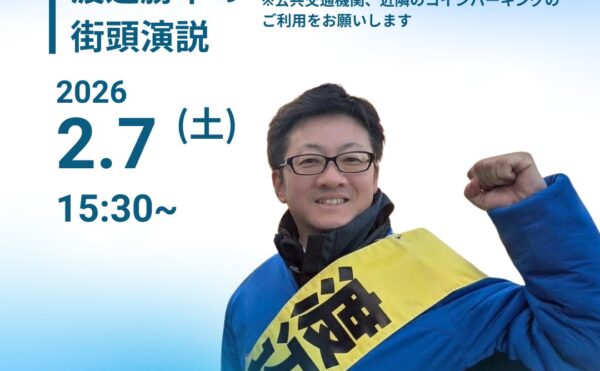 NEW 2026年2月4日コラム広報スタッフ 【感謝】マイクを置いた後の、静かな熱気と再会。法律で定められたマイクの使用時間が終わり、静寂が戻った街頭。 しかし、渡辺勝幸の周りには、そこから始まる「温かな時間」がありました。 SNSや各種グループメール、LINE等での「今夜はここに立っている」という情報提供を見 […]