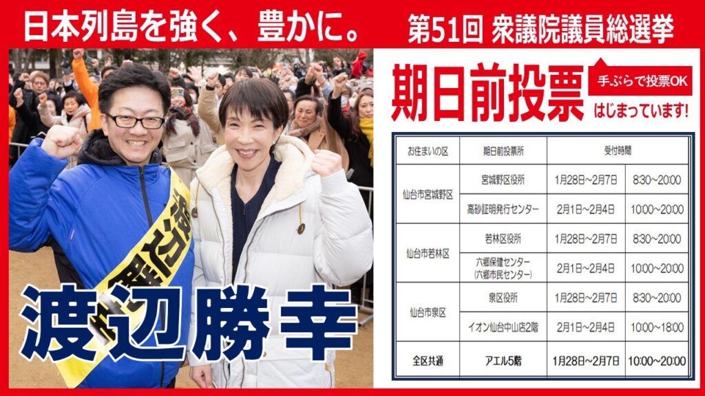 美味しい夕食の前に。 楽しいお酒の前に。 「強くてやさしい日本」を作るための1票を、ぜひ投じてください。 その1票が、これからの生活コスト(電気代や物価)や、地域の安全を変える大きな力になります。
