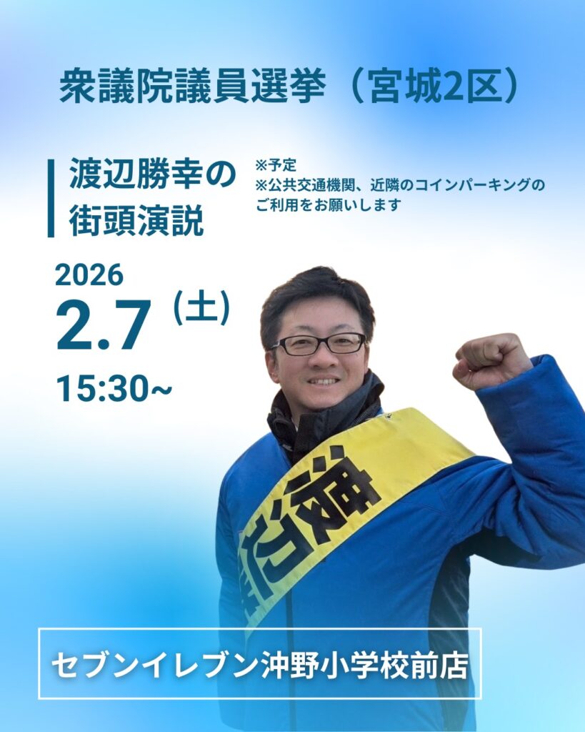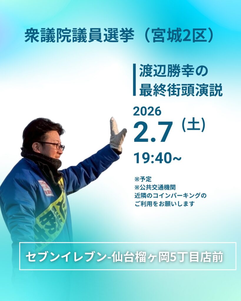 渡辺勝幸です!明日、いよいよ選挙戦最終日です。 私の遊説スケジュールの「最後」を見て、不思議に思われた方もいるかもしれません。